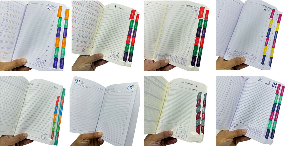 Die inneren Seiten fassen persönliche Informationen zusammen, 2026-2028 Kalender, 2026 American National Holidays, Conversion-Tabellen, internationale Hotelverzeichnisse, jährliche Pläne, Internetsuchungen und andere reichhaltige Informationen. Die Kalenderseiten sind fein auf Monat, Woche und Tages mit einer reservierten Notfallspalte und einem seitlichen Farbmonatsetiketten für das schnelle Surfen aufgeteilt. Es ist ein eng anliegendes Werkzeug für die Planung von Arbeiten und das Leben und das tägliche Leben, das Ihnen hilft, jeden Zeitraum von 2026 zu arrangieren, sei es aufgenommen, Arbeiten, Lebensunterhalt oder wichtige Feiertage zu markieren. Es kann leicht kompetent sein. Unsere spanische Version des Notizbuchs wird von der Aiyide Stationery Company produziert.